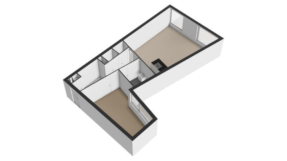 - 2 kamers (1 slaapkamer)